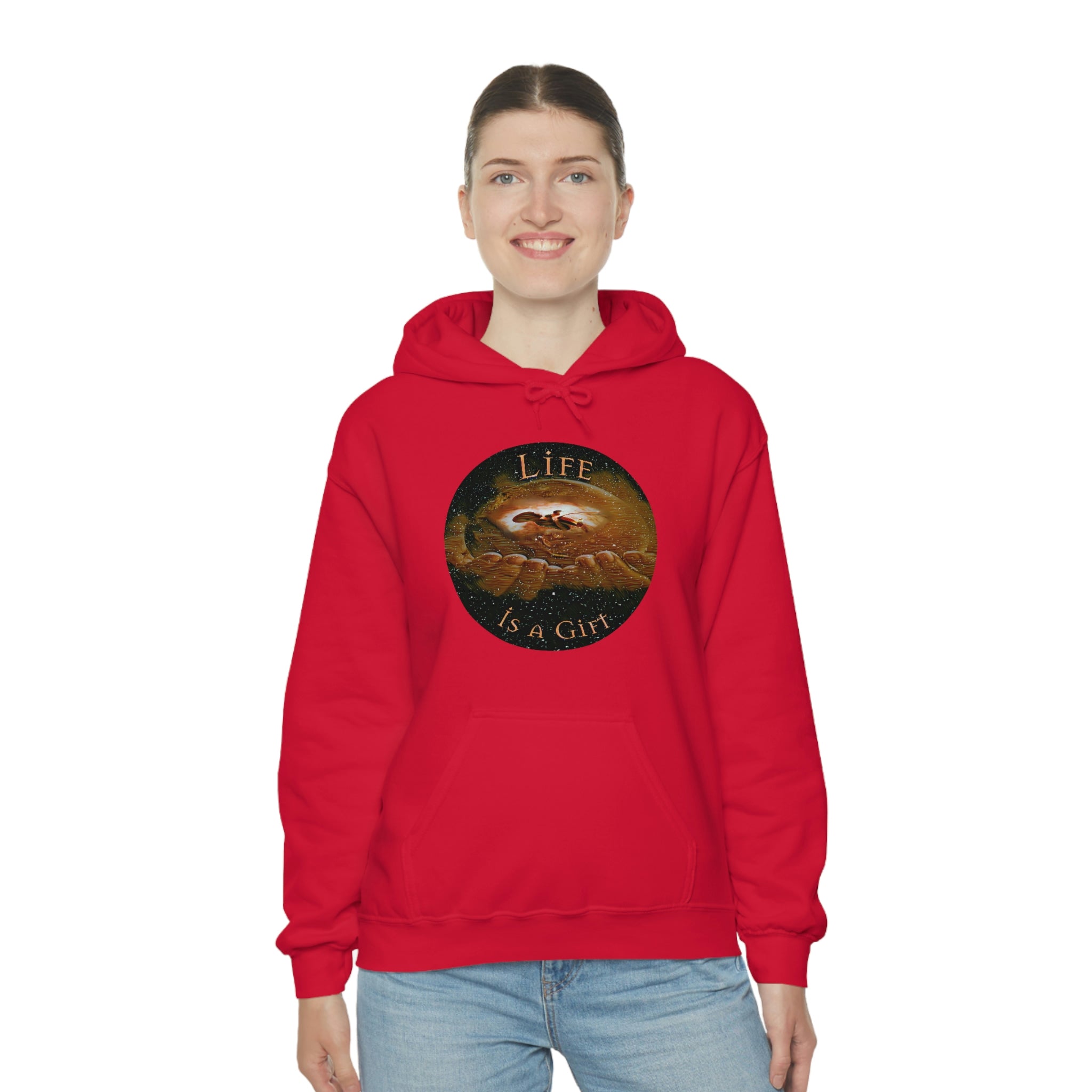 Proclaim Life in style with this ultra-soft sweatshirt, featuring the word Life is a Gift displayed across its front. The loose, hooded fit is ideal for everyday wear, while the durable cotton-poly blend makes this a long-lasting staple you can show off for years.